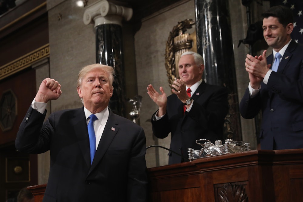 Speaking with journalists a few hours before his State of the Union speech, President Donald Trump harped on the theme of national unity. “I want to see our country united,” he said. “I want to bring our country back from a tremendous divisiveness, which has taken place not just over one year, over many years, including the Bush years, not just Obama.”