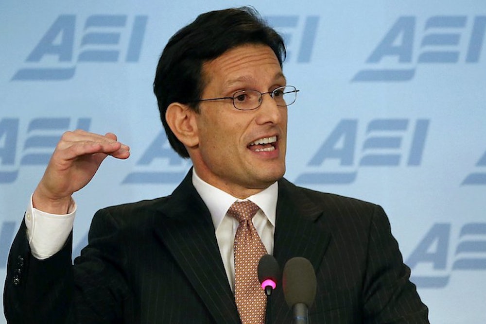 Eric Cantor built up big expectations for his speech this afternoon at the American Enterprise Institute. Monday’s Wall Street Journal gave it a breathless preview under the headline, “A GOP Leader Aims to Change Party’s Message”: “Mr. Cantor plans to talk about a range of areas—from education to medical research to job training, as well as an overhaul of the tax code—in the context of how Republican ideas could benefit families across the nation, a top aide to the majority leader said.” This morning, it was Politico’s turn to give a drum roll for what it called “Cantor 4.0”: “House Republicans haven’t settled on an agenda yet, but Majority Leader Eric Cantor is ready to rebrand the party.”