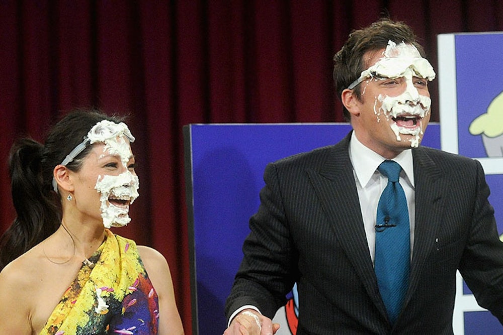 Fallon and Kimmel’s shows have been particularly adept at cranking out video sketches designed to thrive outside of the broadcast format: Fallon’s slick, gimlet-eyed “Downton Abbey” parody “Downton Sixbey”; last year’s Halloween candy challenge from Kimmel, a genius mash-up of YouTube clips in which parents filmed their crestfallen children being told that all of their Halloween candy had been eaten. On one recent “Jimmy Kimmel Live,” guest Jennifer Aniston took a sledgehammer to Kimmel’s desk before the interview began.1 Then she gave Kimmel a haircut. Another night, Kimmel put Jessica Alba in a glass-encased kissing booth outside the studio. Each stunt was packaged online as a separate clip. Jill Leiderman, executive producer for “Jimmy Kimmel Live,”explained that the producers are always looking for ways to “add texture to the panel segment.” “If given the choice between a straight-talk segment between a celebrity and the host, or a segment where we get the celebrity to participate in something more active,” she said, they generally try to choose the latter.