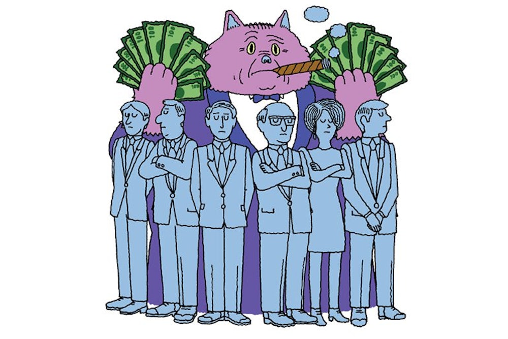 Galbraith was writing about manufacturing giants like General Motors and U.S. Steel. These seemed indestructible at the time, but of course they would soon prove all too susceptible to competition from abroad. Still, Galbraith’s vision of the regulatory state comes pretty close to describing today’s relationship between the federal government and a different oligopoly: the Big Six megabanks. Back in 1967, Galbraith judged financiers a “dwindling influence” in the U.S. economy, “honored more for their past eminence than their present power.” That has all changed. Today, finance practically is the economy, gobbling up nearly one-third of all U.S. corporate profits; its practitioners’ earnings now equal fully 9 percent of gross domestic product.