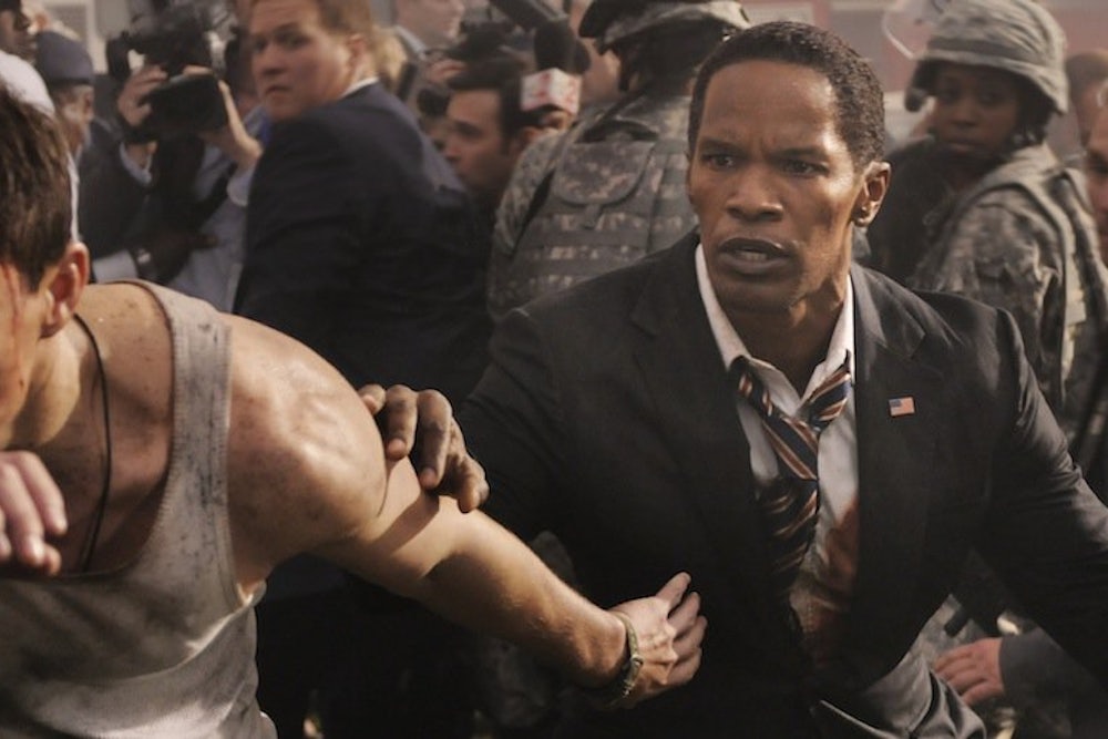 In the strangest line of the entire film, the arch-conservative villain tells Foxx that, as president, he had one moment of glory: ordering a daring Special Forces raid in the Muslim world. Abbottabad will be on the minds of most viewers, but according to the film Foxx’s decision was the hawkish mistake that turned him into a dove. Thankfully, it doesn’t prevent him from grabbing a rocket-launcher and blowing up a carload of disgruntled right-wingers.