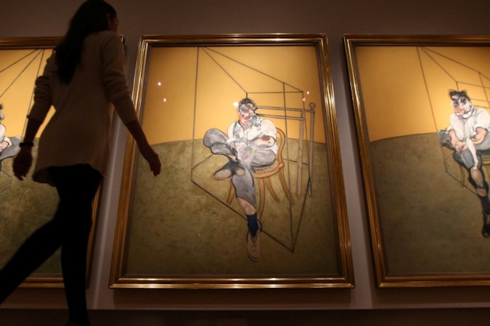 Francis Bacon's 1969 painting Three Studies of Lucian Freud was bought at Christie's last night for $142.4 million, setting a record for the most expensive piece of art ever sold at auction. (It beat the previous record, Edvard Munch's The Scream, sold in 2012 for $120 million). But while the Irish painter, who died in 1992, reigns over the art market, his critical legacy is more divided. In this 2009 essay, Jed Perl panned the painter's art as empty and nihilist, celebrated more for his bad boy reputation than its artistic value.