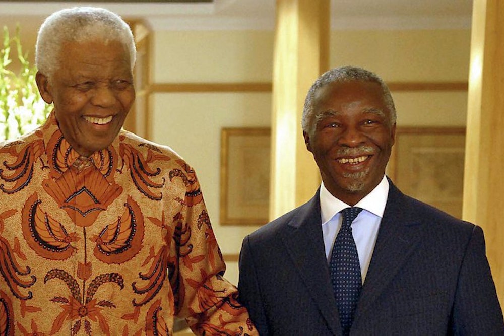 But why do the other South African politicians have all those flaws in the first place? Siphoning off public funds and abusing power to procure sex—the woman who accused Zuma of rape was a young family friend who admired him like a father; Zuma offered as proof that their sex was consensual the fact that she accepted money from him to take a cab home afterwards—go way beyond a taste for gaudy shirts, the kind of endearing little deficiency Mandela would ascribe to himself. Many claim the titanic example of goodness Mandela set crippled other politicians’ self-esteem and made them pursue other, less savory political pathways rather than try to fill his enormous shoes. Mbeki himself groused about the suffocating influence of what he called the “one good native” syndrome: The world’s belief that Africa had managed to mint just one great black leader, Mandela, and everybody else was bound to disappoint. In this interpretation, Mandela’s moral beauty triggered something like the backlash the awareness of his physical ugliness triggers in Shakespeare’s tyrant Richard III: “Since I cannot prove a lover / To entertain these fair well-spoken days, / I am determined to prove a villain.”