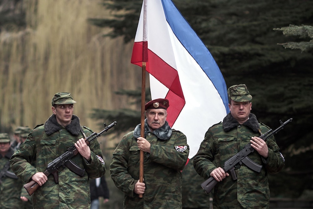 This Russian soldier filmed a video testimony in which he impersonates a Ukrainian sergeant and asks people not to believe reports that water in Crimea has been shut off and that the Ukrainian army has been beseiged. "Let me tell you, in Crimea almost nobody speaks Ukrainian," he says.