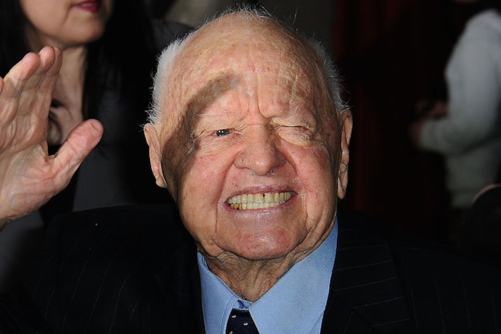 He was an astonishing actor, a galvanized entertainer and a star who could never diminish his own glory (though he tried). He was Puck and Baby Face Nelson—only in America. But it is not enough to say that we have lost an actor, a vaudevillian, an artist, and a national treasure. It is the force that is gone, and the sense of that force as part of our history. We know what it is to admit that there is no one left alive who fought in the trenches of the Great War. Soon there will be no one left who existed in a Nazi concentration camp. So Mickey Rooney was the last male left alive who had been a true star and a phenomenon in the 1930s, when Hollywood believed it ran the show and had established the idea of some spunky, brilliant kids doing it. After all, the show was hardly a thing for which one could expect adult participation.