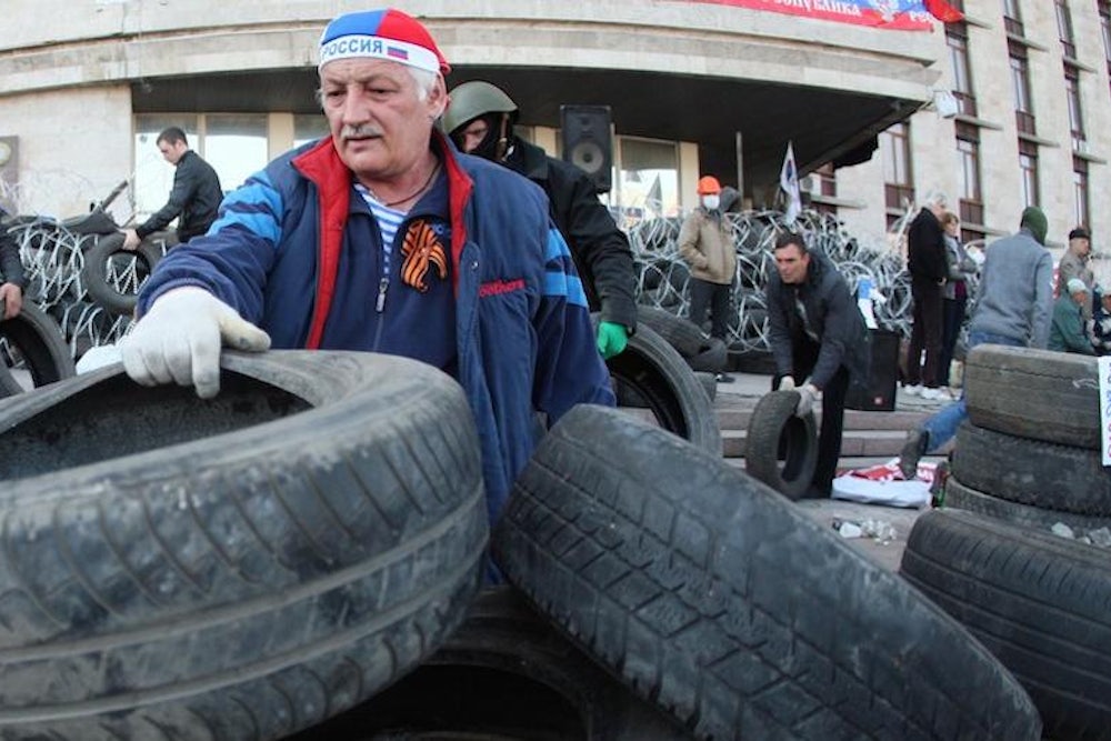 "Russian involvement is there," says Lukyanov. "It's moral, political, and maybe even financial. It would be strange if it weren’t there." Why? What is Russia angling for here? "Russia needs this to not get an anti-Russian Ukraine under its belly," Lukyanov explains. "Because if it’s going to be consolidated, it’s going to be consolidated as an anti-Russian Ukraine," in part because Russia took Crimea, in part because, he says, this has been the animating philosophy of the successful post-Soviet states. Russia, in other words, needs not just to destabilize the new government in Kiev, but to make sure the country never joins the E.U. or NATO, and that it remains weak and pliable, if not an outright vassal state.