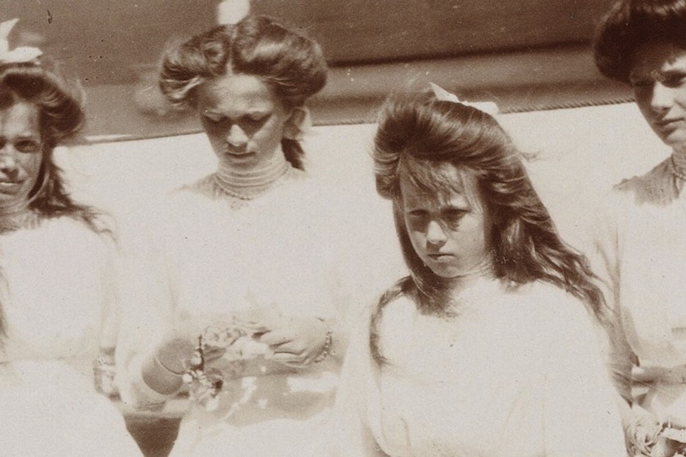 Rappaport does succeed in making each sister unique. Olga, the eldest, is “the most deep-feeling and sensitive.” She spends a good chunk of the book pining away for one or another of the swarthy officers with “splendid moustaches”; as a French journalist observed, she has “something of the serenity of the mystic.” Tatiana, second eldest, steals the show in two arenas: During the war, in the military hospitals, where her nursing skills and hard-working nature come to the front, and in photographs. She is arrestingly beautiful. But she is as cripplingly cautious and reserved as her mother, who taught her daughters that you should only reveal that something is wrong “when someone is dying.” If you need your wound dressed go to Tatiana, but if your soul is aching, Maria’s your girl. Though “not especially bright,” she is good-natured and stoical, endowed with “an earthy Russian quality not possessed by any of the other children.” Anastasia, nicknamed Shvybzik, German for “little mischief,” is a loose cannon. Starring in a series of plays staged by the tutors during the freezing winter of their Siberian imprisonment, she provides her grieving mother “the last heartily unrestrained laughter the Empress ever enjoyed.” Most importantly, for the book’s sake, her letters are actually entertaining.