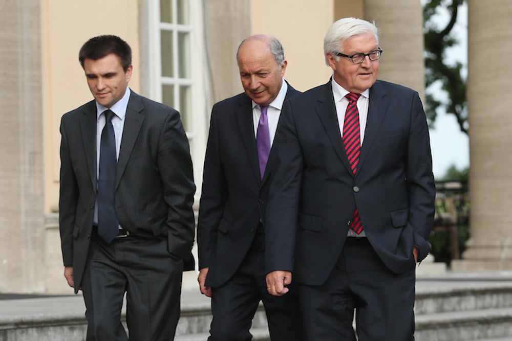 Despite increased sanctions, Russia has hardly felt ostracized by European leaders for its actions in Ukraine (as much is evident from the Russian foreign ministry’s coverage of yesterday’s talks, during which a member of the Russian delegation reportedly made “inappropriate jokes” about the situation). So it is wholly unsurprising that yesterday’s talks between the French, German, Ukrainian, and Russian foreign ministers failed to produce any semblance of an agreement with regard to the crisis in Ukraine. German Foreign Minister Frank-Walter Steinmeier had been hoping for "a roadmap toward a sustainable ceasefire,” including an agreement to stop the flow of arms and rebel fighters into Ukraine, Deutsche Welle reports. No such progress was made in Berlin. “We are not able to report on positive results on reaching a ceasefire and on [a start to] the political process [to resolve the conflict],” Russian Foreign Minister Sergei Lavrov told reporters.