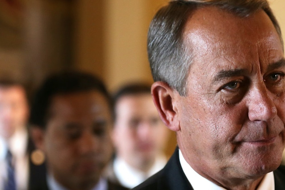 Boehner’s comments Tuesday were a not-so-veiled attempt to dissuade President Obama from taking unilateral action on immigration. “I did outline that, you know, there’s a possibility that Congress could take this issue up next year," he said. "But if that were going to happen, there are things that he should do, and things he should not do as we lead up to this.” As my colleague Brian Beutler has written, the Republican desire to stop Obama’s executive action is an indication that the politics play in Obama’s favor.