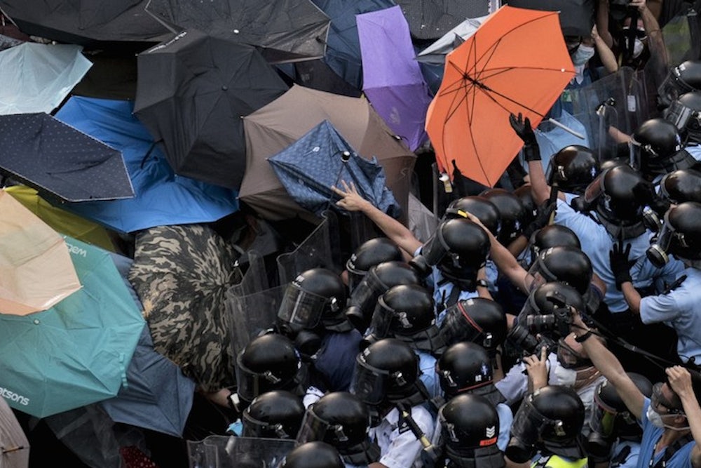 The conventional wisdom after the Sunday night clashes was that the movement had lost momentum. But my conversations with protestors on Monday suggested the opposite. Many of the people I spoke with didn’t come out until after the police cracked down. Henry Wong, 19, a student at Chinese University of Hong Kong, decided to join after seeing a live broadcast of students fighting with police. “I’m here so I can sleep at night,” he told me. Michelle Chan, 18, also said she was galvanized by the use of force: “Police don’t have to be that cruel.” Tony Wong, 24, said he was skipping work to come to the protest. I asked if his boss would be upset. “I can get another job,” he said. “I can’t get another Hong Kong.”