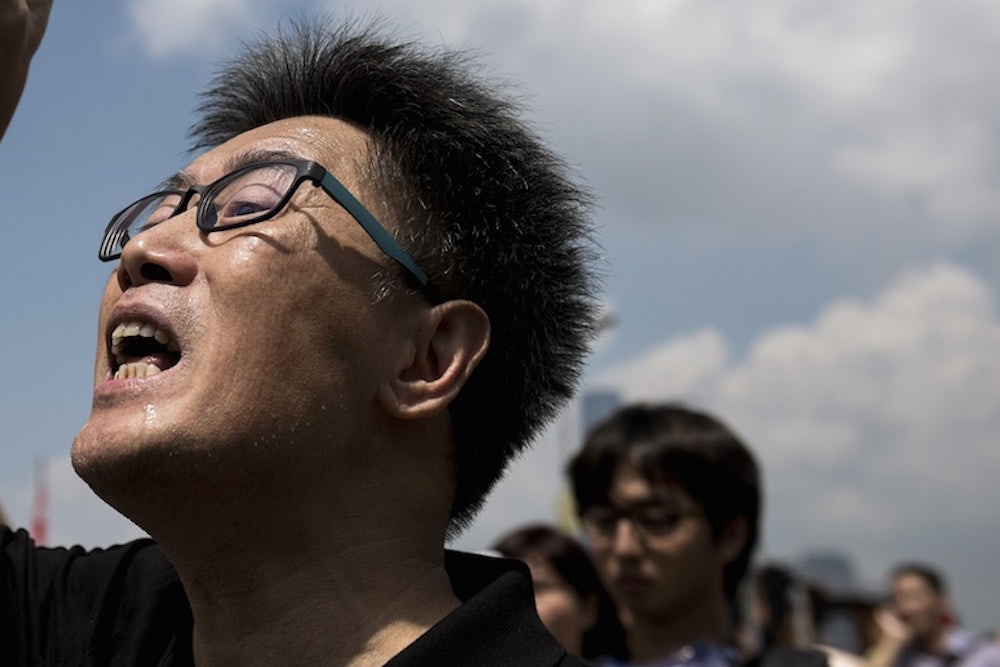 Occupy Central organizers have done their best to distance themselves from the anti-mainland movement and keep the focus on election reform and universal suffrage. Addressing the crowd in Tsim Sha Tsui, Caleb Lam, 27, tried to keep things positive. “All you tourists, Hong Kong welcomes you,” he said into the microphone. “I’m glad you’re here to witness this.” Offstage, he told me that many protesters have been taking the mic to rail against mainlanders. “It happens all the time,” he said. “We try to get them offstage.”