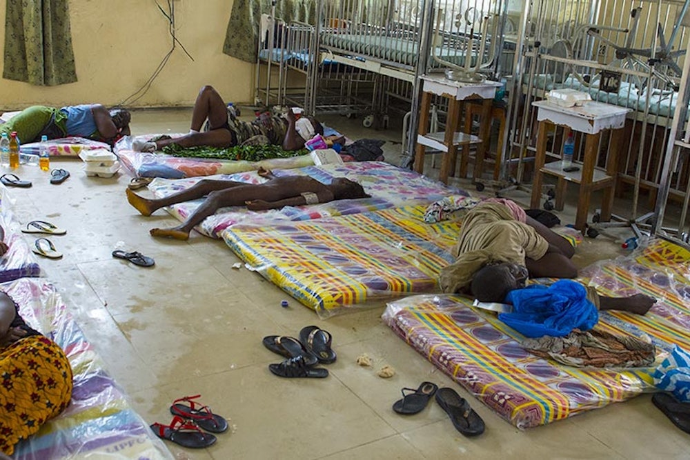 You don't even need numbers to appreciate the severity of need for more beds and better care. You just need to look at the conditions of medical facilities in Liberia and Sierra Leone, two of the countries hard-hit by Ebola. For example, compare two images below. One is of the Emory University isolation unit, where three patients received treatment. The other photograph, taken by the Washington Post's Michel du Cille, in late September, shows a hospital that's become a transfer and holding facility in one of the poorest parts of Monrovia, Liberia. It doesn’t take an advanced degree in medicine to figure out which facility is adequate—and which is not.
