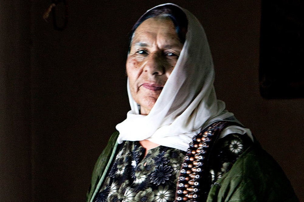 I asked if I could see her weapons stash, and she said she couldn’t tell me anything. She nodded at the intelligence officer. “I have plenty of grenades,” she said. “If the Taliban come, I just pull a grenade and throw it. I just keep throwing. It’s a great location for grenades.” She boasted about going to Hamid Karzai’s guesthouse, eating pomegranates with her fingers, receiving bags of cash to bring back to her mountain to trade for grenades, goats, and turkeys, so she’d be strong to kill the Taliban.