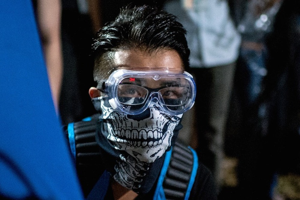 Around 6 p.m. on Tuesday, a user on a web forum called Hong Kong Golden suggested that Occupy Central protesters seize Lung Wo Road, a major thoroughfare running through downtown Hong Kong. Demonstrators should “coincidentally and accidentally walk onto the road,” the user wrote. Soon after 9 p.m., a group of protestors swarmed into the street, freezing traffic in both directions and setting off violent clashes with police. After midnight, someone posted a photo on Facebook showing protestors barricading a tunnel, with the triumphant title, “Brave Golden Forum, Suddenly Attacking Lung Wo Road.”