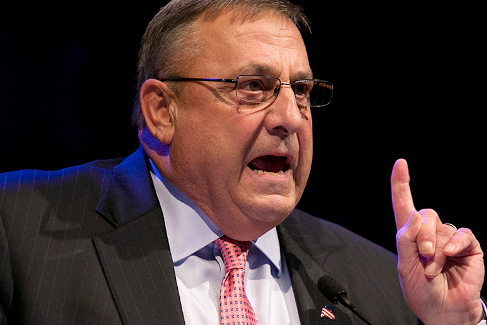 The same dynamic exists in the three-way Maine gubernatorial race, which, thanks to the continued split between Maine Independents and Democrats, looks like it might very well result in the re-election of Republican Paul LePage, America’s craziest governor.