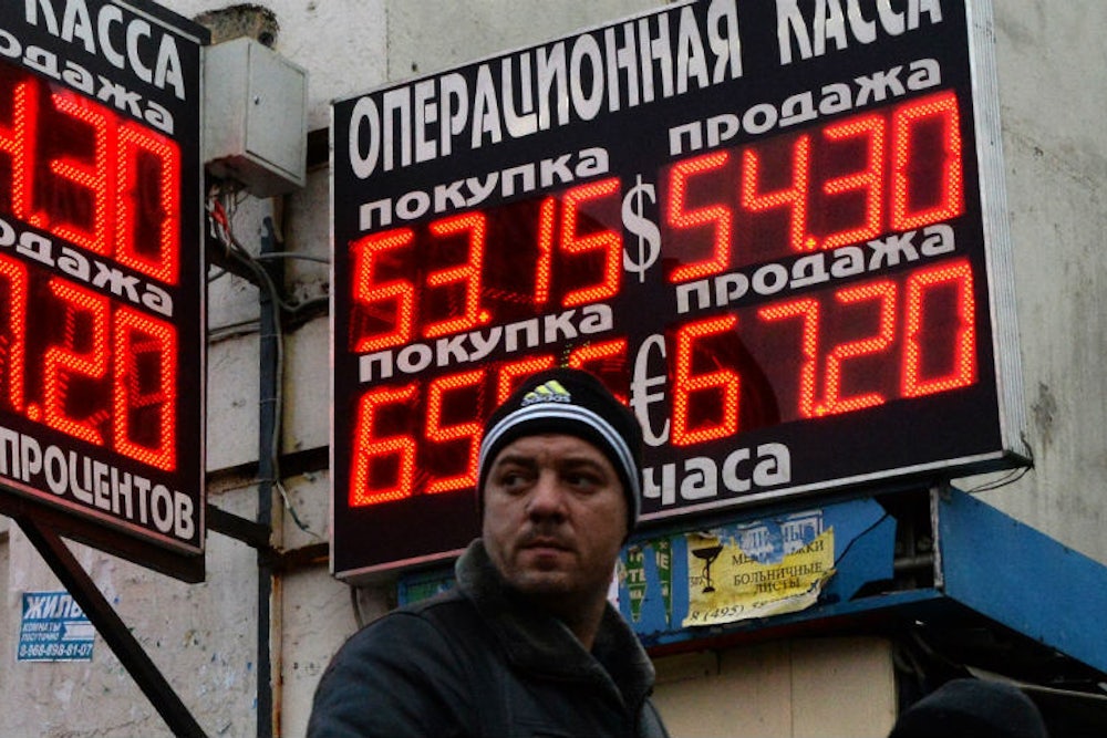 — Steven Pifer (@steven_pifer) December 16, 2014Rosneft, Russia’s state-owned oil company run by President Vladimir Putin’s longtime friend and former chief of staff Igor Sechin, appears to be behind the currency’s abrupt tumble. Facing $60 billion in debt while bruised by Western sanctions, and having been denied a massive government bailout, the company scrambled to find a way to make debt payments due this month, according to The New York Times. Rosneft issued 625 billion rubles in bonds and sold them to Russian banks, which then deposited them with the Central Bank. “The central bank started the printing press to help the Sechin-Putin business, and gave Rosneft 625 billion newly printed rubles. The money immediately appeared on the currency market, and the rate collapsed,” the liberal Russian politician Boris Y. Nemtsov told the Times. End result: Rosneft wins, Russians lose.