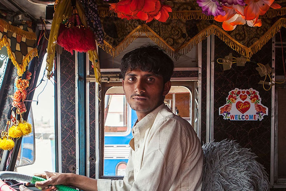 The drivers take great pride in their picturesque trucks. In a way, they are an extension of the personalities of their drivers—mostly young men who work long hours, moving all sorts of goods throughout the country. The brightly colored vehicles, adorned with everything from paintings of deities to pop culture references, offers a snapshot of an India caught between tradition and modernity.