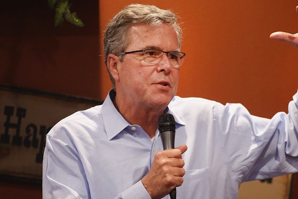 In South Carolina on Tuesday, former Florida Governor Jeb Bush revealed the inherent contradiction in the Republican position on the minimum wage. “We need to leave it to the private sector. I think state minimum wages are fine,” Bush said. “The federal government shouldn’t be doing this. This is one of those poll-driven deals. It polls well, I’m sure. … But the federal government doing this will make it harder and harder for the first rung of the ladder to be reached, particularly for young people, particularly for people that have less education.”