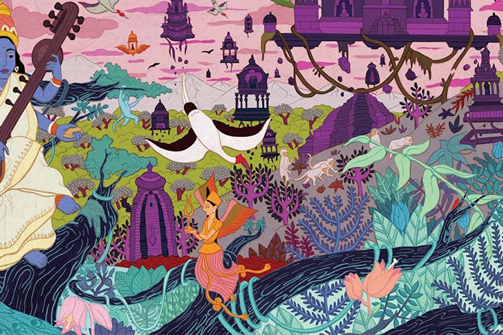 Yet for all its psychedelic inventiveness, and for what genre writers today would call “world-building,” Sastry’s imagining remained obscure and unknown in colonial India. Even in post-colonial India, as Josyer guided the V.S. out into the world, it stayed on the sidelines, one more quasi-miracle in a land of many quasi-miracles. Josyer, whom Lyon described as believing that “the Indo-Aryan civilization out of which Hindu India grew was the greatest, most advanced, and most enlightened civilization the world has ever known,” was still representative of only one strand of Indian thinking. It needed the current age of wealthy, aspiring India to bring the V.S. and its attendant claims about Hindu India into the center stage of the national consciousness.