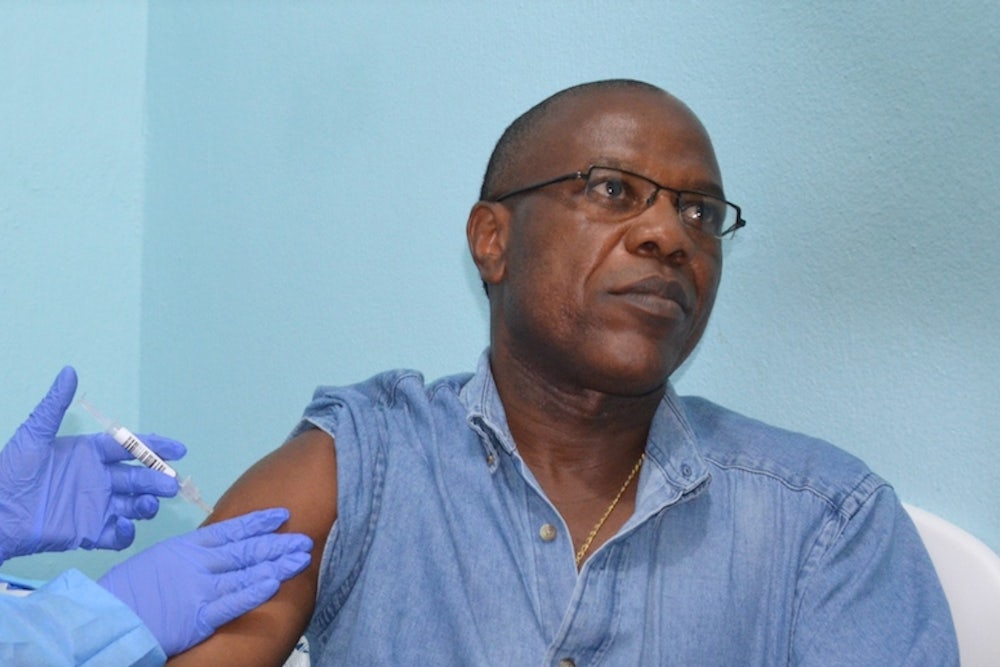 In the clinical trial, the investigators drew a “ring” of vaccination around people with known exposures to Ebola. Groups of people who were exposed to a person with Ebola virus disease, or to someone who had been in contact with someone else with Ebola virus disease, were invited to participate in the study. Researchers recruited 7,651 people who fit that profile and randomized them to receive immediate vaccination with rVSV-ZEBOV or vaccination that was delayed by 21 days.