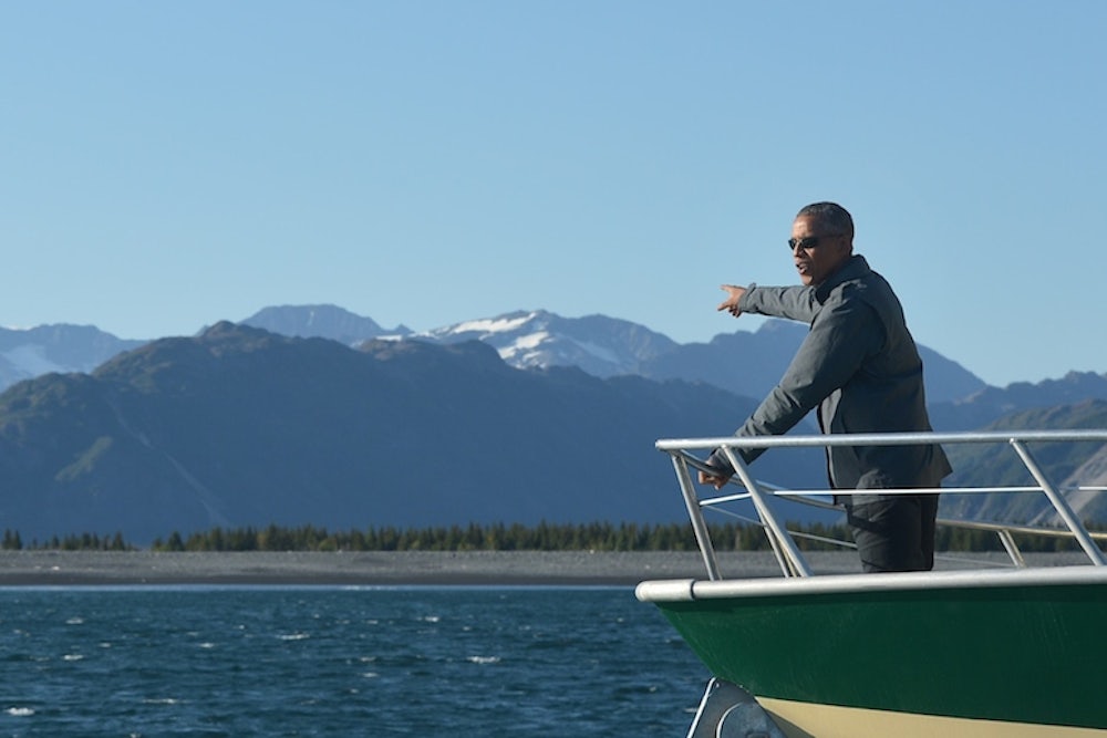 Oklahoma Republican James Inhofe threw a snowball on the Senate floor last winter as proof that it was "very, very cold out," which must mean climate change is a hoax. Now, President Barack Obama is using a glacier to make the opposite case. On his historic trip to Alaska, Obama hiked to Exit Glacier in the Kenai Fjords, which he said "is as good of a signpost of what we’re dealing with when it comes to climate change as just about anything." He added, “We want to make sure that our grandkids can see this.”