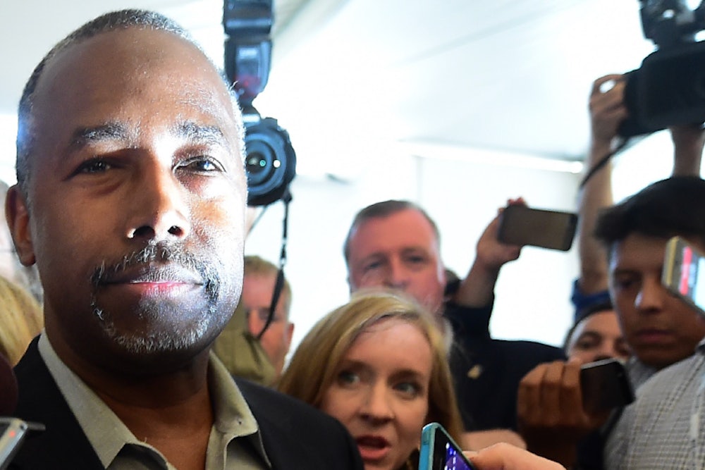That Carson is black and popular among Republican primary voters is incontrovertible. It’s also largely beside the point. The question of why Carson is popular on the right is complicated, and surely in part related to his aforementioned conservative politics, his religious devotion, and his hypnotically avuncular demeanor. But it is just as surely related to the fact that Carson absolves conservatives of their coarse and patronizing view of black voters and political leaders. Carson attributes his unpopularity with liberals to the notion that he had the temerity to “come off the plantation.”