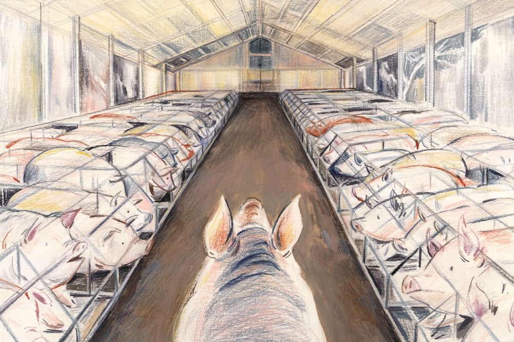 If modern farms are factories, breeding animals are reproductive machines, micromanaged to maximize their fecundity. The volume and standardization of livestock on modern farms makes artificial insemination profitable, but it can only be profitably managed through ongoing systematic cruelty. After insemination, workers on some farms inject sows with drugs to ensure farrowing occurs at precisely 114 days and within regular working hours. Humans will generally also be present to midwife the ever-larger litters: Intensive selective breeding has pushed sow fertility well beyond what pig bodies can naturally sustain.
