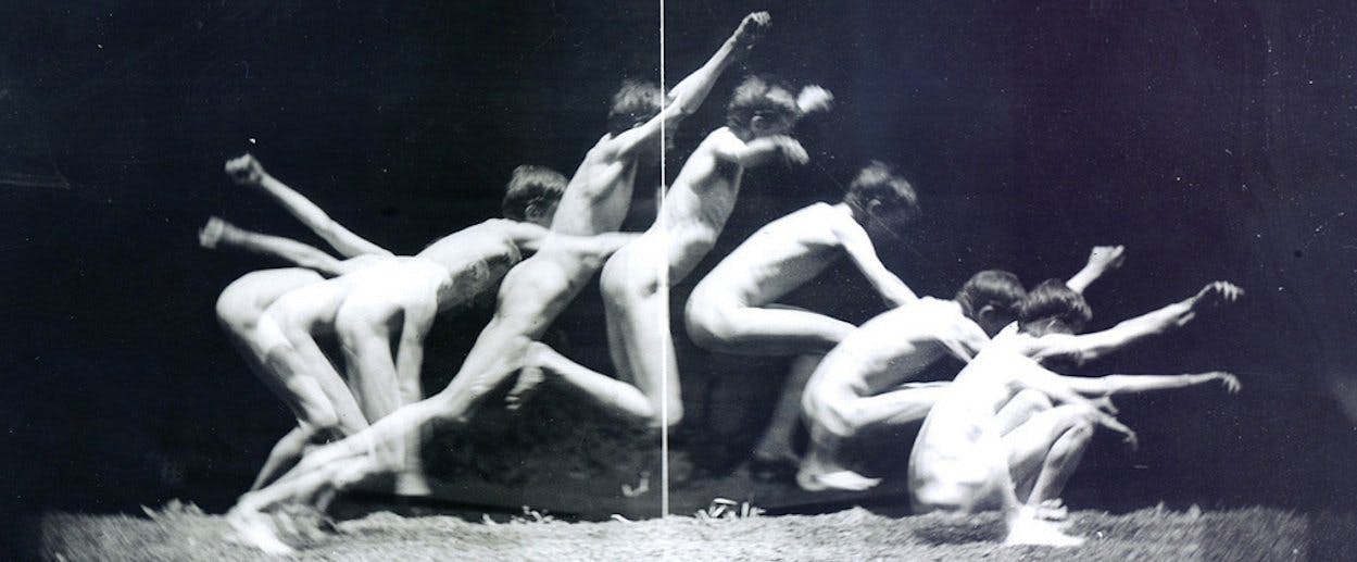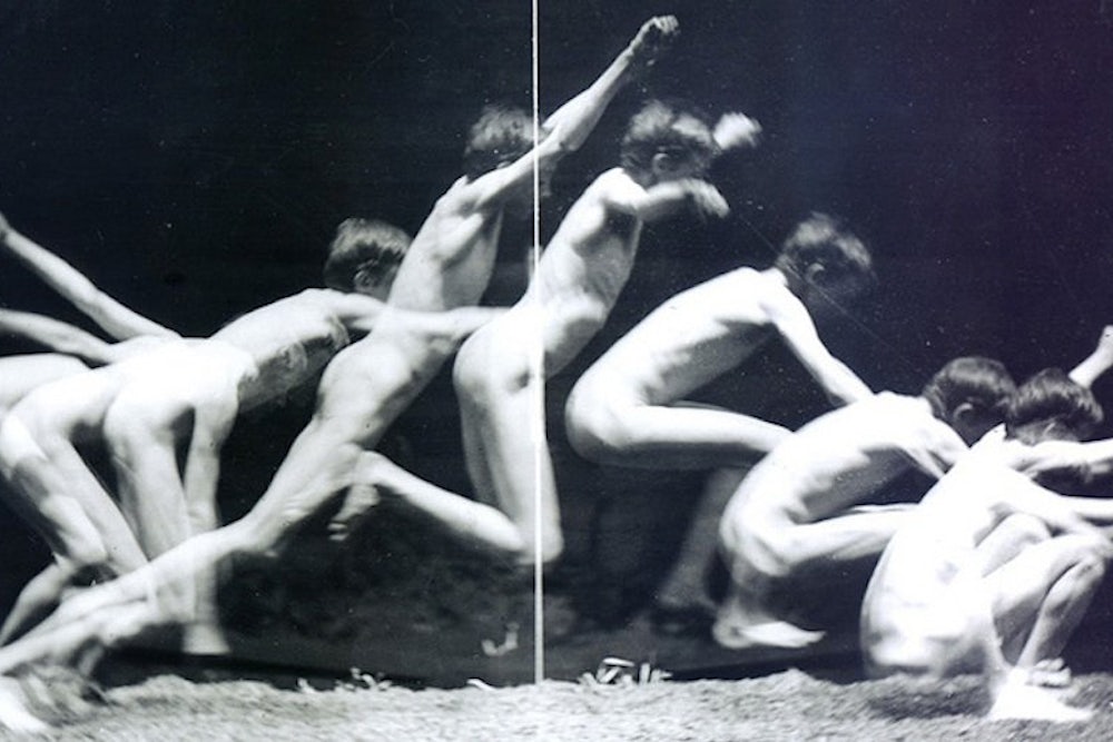 This is the legacy of Edward Muybridge, an English-born, late nineteenth-century photography pioneer famous for his study of a horse in motion. You’ve probably seen it at some point: a jerky film of the animal running. Muybridge devised the image to help settle the question of whether the four feet of a horse ever rise off the ground at the same time while trotting. (They do.) He went on to document all manner of motion, ending his career with often openly sexual nudes. Trotting horses and black-and-white bodies may seem far from the varied nature of contemporary photography and film. But moving images stripped of narrative context—a medium Muybridge mastered more than a century ago—are the visual currency of the moment. Muybridge broke down motion in order to help his contemporaries understand it; today we break down motion to understand a little more about the ephemeral details of life.