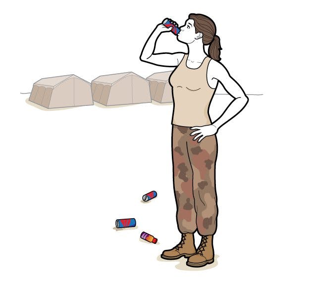The most popular brew among soldiers is arguably 5-Hour Energy; in 2011, sales of the energy shot reached $9.2 million in the military (almost 1 percent of the company’s total annual sales). But officials are increasingly concerned that energy drinks, some of which contain as much caffeine as three cups of coffee, might actually be impairing personnel performance. According to an Army study, soldiers who drink at least three energy drinks a day tend to sleep fewer than four hours a night, suffer from insomnia, and even doze off during briefings or while on duty.