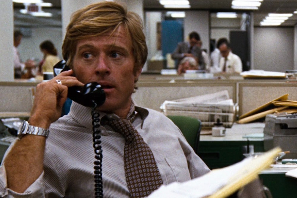 Fifteen years after my New West internship—with New West and its successor publication, California magazine, long gone—I was working as a Washington-based reporter at the Wall Street Journal when Pakula once again decided to make a movie set largely inside a newsroom. The movie this time was an adaptation of John Grisham’s The Pelican Brief. Because he’d already recreated the Post, Pakula decided to model his (in this instance, entirely fictional) newsroom on the Journal’s Washington bureau. Once again, assistants were sent in to figure out what a Washington newsroom was supposed to look like. As far as I know no effort was made to create replicas of our desks, but we were alerted that our paper trash would be collected, shipped to Hollywood, and festooned across a sound studio. The Pelican Brief was nowhere near as good as All The President’s Men, and the fake Journal Washington bureau was no match for the fake Post newsroom, even knowing the trash spread across Denzel Washington’s desk might be my own.