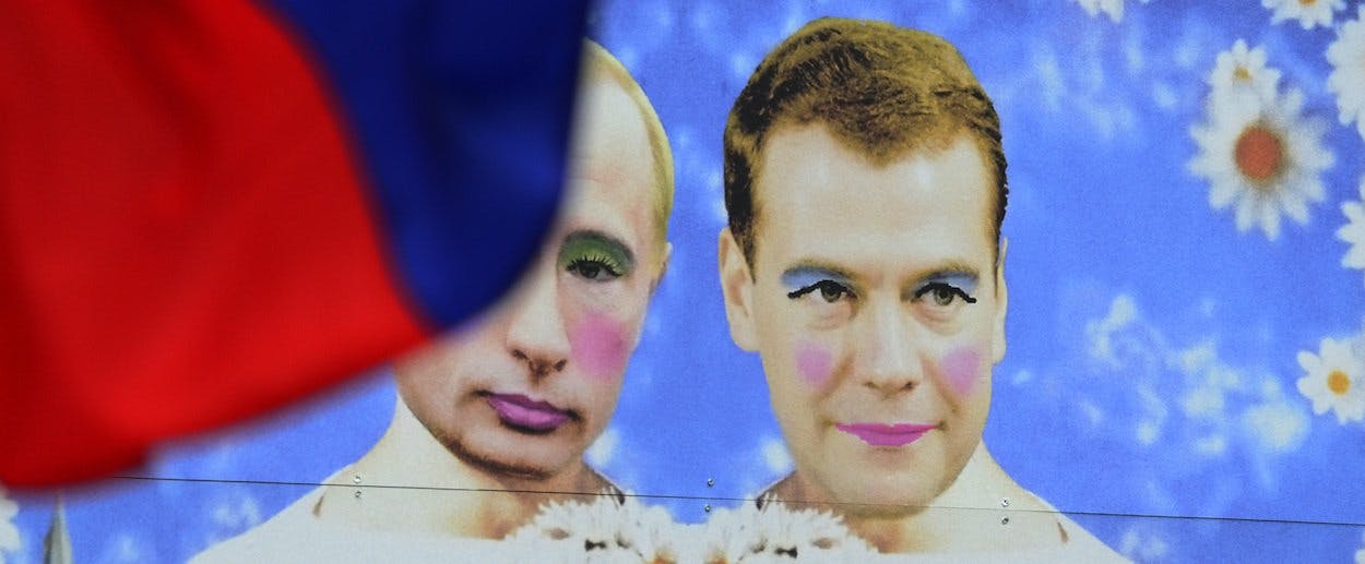 Ironically, the very propaganda that the Russian law would seek to root is all over state television, in weekend variety shows featuring local pop stars. The men who perform fall into two categories: manly brute and the sensitive, sensuous lover. Both are ideals of manhood in Russia, but the problem is that the men in the latter category are almost uniformly—and very quietly—gay. That Philipp Kirkorov, Russia's pop king, is gay is an open secret, and, for all the church's apparent stodginess, he rented out a church to baptize the daughter he had with a surrogate mom. The child's godfather was Andrey Malakhov, Russia's most popular talk show host, who is also known to be gay. As is Valentin Yudashkin, Russia's premier clothing designer, who, well, is incongruously married. Millions of women across the country watch these men, and countless others like them, every day on their televisions and sigh, wishing their men were more like them. This is the less educated, less affluent part of Russian society most vehemently opposed to homosexuality—"the light blue ones," as they call them, or the "homosexualists"—but the ones whose hearts race the fastest when they watch ballroom dancing and ballet (both, of course, are very popular).