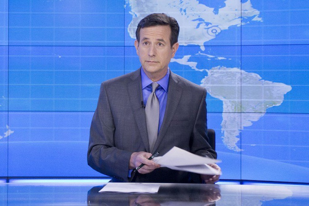 Mike Walter is waiting patiently behind the anchor’s desk. Before tonight’s live broadcast, he’s recording a pilot for the new two-hour version of the show. In the control room, an energetic directoradministers profanity to his colleagues, while in the studio, a few boom-mounted cameras pirouette around the room showing Walter from a half-dozen different angles, and another camera on a robotic dolly chugs slowly across the floor with no apparent direction, like a curious alien, at one point coming so close to Walter that his face blows up in the control room monitors and allows a pore-level view of that mask of makeup rarely seen outside TV studios and open-casket funerals. The wrong image was on the monitor next to the anchor desk; then the right image was up but wasn’t a good image; then Walter’s co-host tripped over some lines; then there were typos on the Teleprompters. Producers and assistants sprinted in and out of the control room to put out little fires, spraying a little more profanity around as they went. It was, in short, a little bit of controlled chaos, a team stumbling around a bit, finding its legs.
