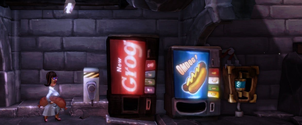 This, at least, was the position I held before cackling at The Cave, and to some extent I hold it still. But Ron Gilbert's genius made it more difficult to argue that video games could never be storytelling platforms. When I used a bell, a hot dog vending machine, and a mechanical claw, for example, to lure a spiky beast into a trap, I was delighted not necessarily with having solved a somewhat simple puzzle but with having witnessed such a clever little gag, the equivalent of anything the Marx Brothers might have lobbed at me in one of their movies. What I was enjoying, in other words, was a good joke.