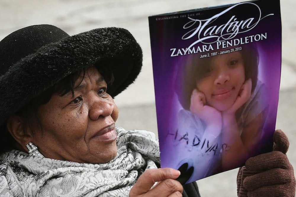 The women drank coffee or sipped water and ignored the doleful oration pouring from an enormous flat-screen TV: a live broadcast of the funeral service of Hadiya Pendleton, the girl shot dead in a Chicago park a week after singing in the presidential inauguration.