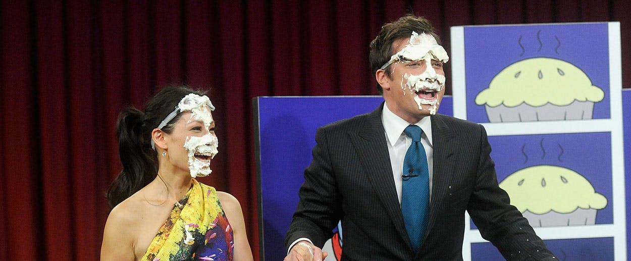 Fallon and Kimmel’s shows have been particularly adept at cranking out video sketches designed to thrive outside of the broadcast format: Fallon’s slick, gimlet-eyed “Downton Abbey” parody “Downton Sixbey”; last year’s Halloween candy challenge from Kimmel, a genius mash-up of YouTube clips in which parents filmed their crestfallen children being told that all of their Halloween candy had been eaten. On one recent “Jimmy Kimmel Live,” guest Jennifer Aniston took a sledgehammer to Kimmel’s desk before the interview began.1 Then she gave Kimmel a haircut. Another night, Kimmel put Jessica Alba in a glass-encased kissing booth outside the studio. Each stunt was packaged online as a separate clip. Jill Leiderman, executive producer for “Jimmy Kimmel Live,”explained that the producers are always looking for ways to “add texture to the panel segment.” “If given the choice between a straight-talk segment between a celebrity and the host, or a segment where we get the celebrity to participate in something more active,” she said, they generally try to choose the latter.