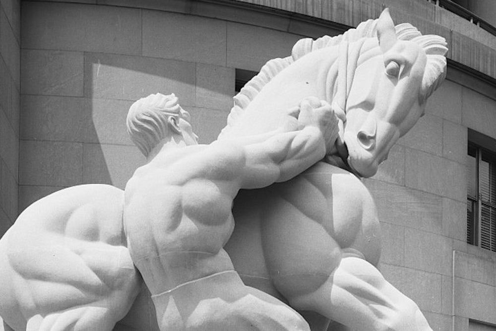 “There is a statue outside the Department of Labor,” David Brooks writes today in his New York Times column, "of a powerful, rambunctious horse being reined in by an extremely muscular man. This used to be a metaphor for liberalism. The horse was capitalism. The man was government, which was needed sometimes to restrain capitalism’s excesses."