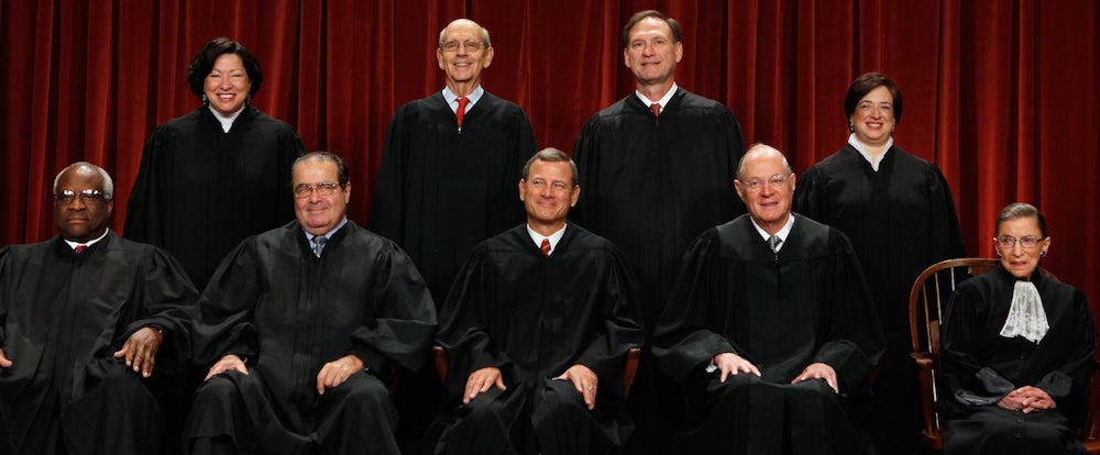 As Douglas Kendall of the Constitutional Accountability Center told me, a crisper way of combining the states rights and equality argument might go something like this. “Justice Kennedy could write an opinion that strikes down [DOMA] on equal protection grounds in part because it’s such a sweeping law that intrudes into areas where states have typically had a fair amount of leeway,” he said. If the conservative justices came to see the equality and states' rights arguments as intertwined, in fact, it’s conceivable that there might be even more than five votes to strike down DOMA. “The conservatives should join the liberals in recognizing the enormity of the discrimination and the unprecedented intrusion on states' rights,” Kendall said. “The combination of those two problems makes DOMA uniquely constitutionally problematic, and justices on both sides of the Court’s ideological divide should be able to unite behind that type of reasoning.” We'll find out this summer whether the conservative justices are as devoted to limiting congressional power on the subject of marriage equality as they were with Obamacare. If they're not, however, libertarian law professors won't be the only ones wondering about the inconsistency.