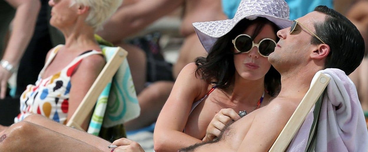 Phil, I agree that Weiner is aware of how deafeningly loud “The Doorways”'s Death Theme was in this episode. I didn’t think it was particularly compelling, but I am persuaded—given the headphone ad—that the show is experimenting with volume. Both Death and the Exposed-Transplanted-Heart Themes drown out your much more interesting account of "Mad Men" as “artificial document about artifice,” and I rewatched the premiere with your attention to the visual in mind. What I noticed bolsters your point, I think: The episode is playing with lighting, lightning, and lighters, and visually, the series’ hard modern edges have slurried into something thick and grainy. For the premiere at least, the show abandoned the blacks and whites of the opening credits to take up the barely visible impression of footprints against sand. Everything’s muted, and the characters in this episode want to fade more than they want to die. As for the premiere’s many paradises and utopias, they add up to a kind of flat floodlit beige, which—among other things—offers a freedom or even a reprieve from the absent shadows of absent mothers.