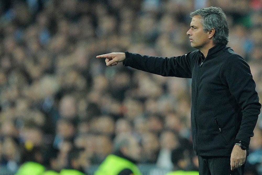 By the time Special One was greeted with the Madrid fanfare, Guardiola’s Barca, featuring the greatest player in the world, Lionel Messi, had endeared themselves with their philharmonic passing to soccer fans the world over—most concerningly, in Mourinho’s jaded opinion, to the media and referees. Diminishing the power of the Barca cult was Mourinho’s urgent job at Real. His resolve steeled after his first el Clasico, in the fall 2010. Fielding about $400 million worth of players, Real was crushed (5-0) at Camp Nou, Barca providing one of the most perfect performances ever. Toward the end of the game, as The Special One kept out of sight, Camp Nou chanted: “Come out of the dugout, Jose!” After the final whistle, the Barca center-back Pique raised his hand with five outstretched fingers—la manita—which ended up on every soccer-friendly front page in the world. It was the most special pounding of Mourinho’s career.