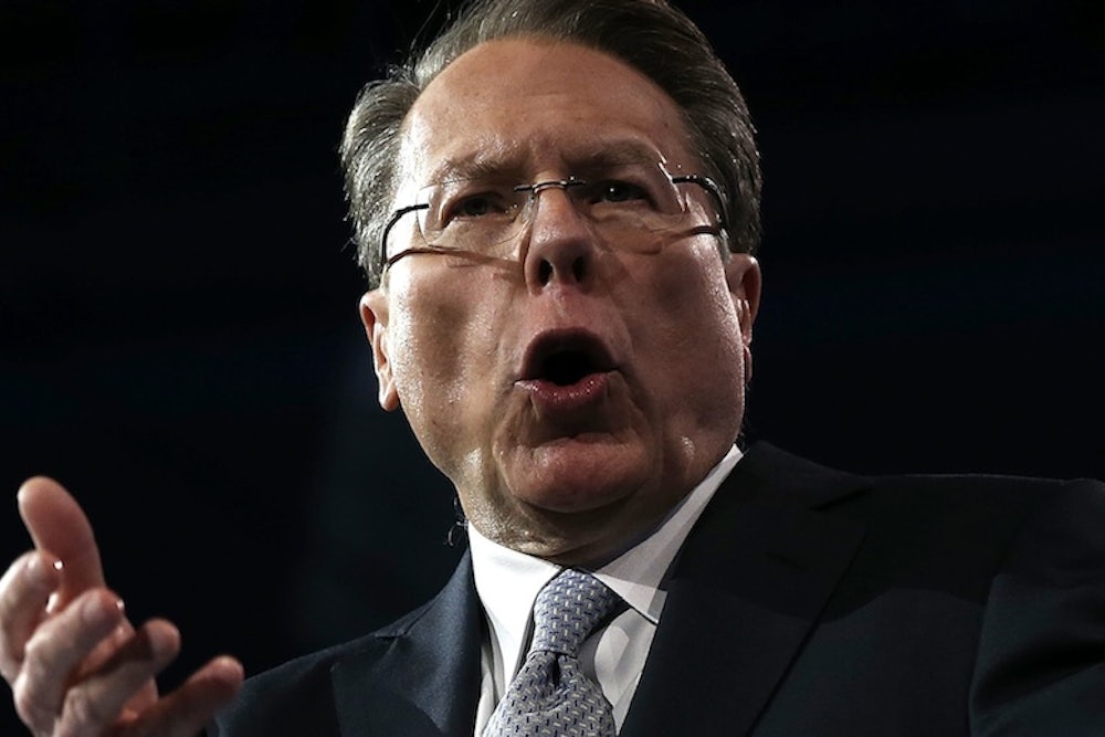 It’s not about hunting, the manly camaraderie, the beautiful stillness of the forest at dawn or any of that crap, Wayne thought. He wanted to scream: You don’t need a bomb to shoot a deer. You need a bomb to drop on the ATF asshole who comes to take your bomb away. Wayne realized that this was sort of a circular argument. But it was good enough for that old fool Charlton Heston, so it’s good enough for Wayne LaPierre. True, a crock pot is a bit harder to carry than a rifle, and probably easier to pry out of your cold, dead hands. But unless we fight for the freedom of all weapons to be owned by people who will love them, then every weapon is at risk.
