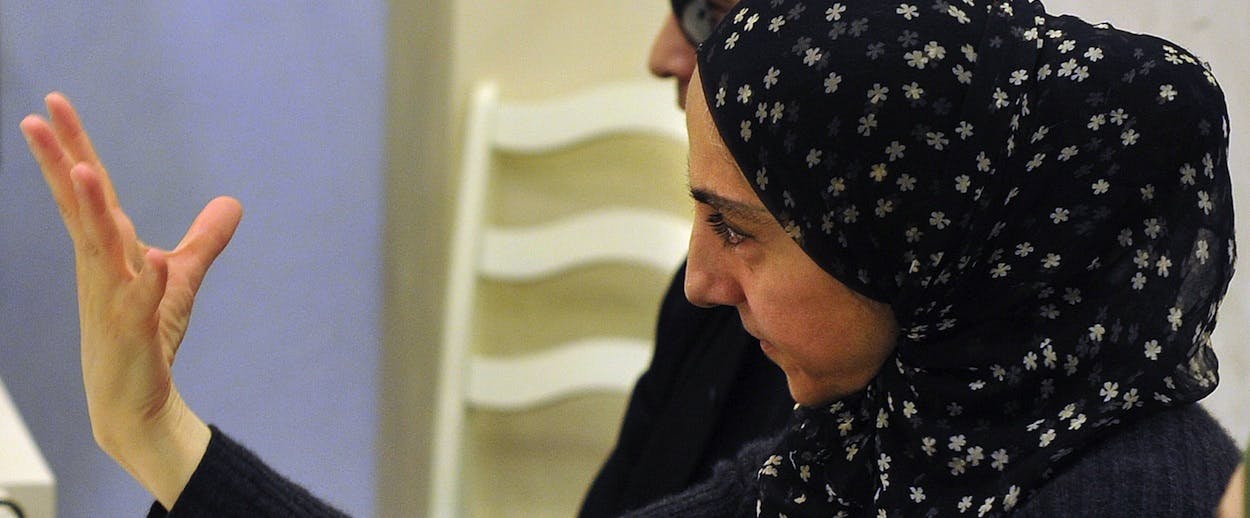 Zubeidat is the new Chechnya, and the new Dagestan. At the Makhachkala press conference, she is dressed in a long-sleeved black caftan, her face framed tightly by a black and white hijab. Her mourning is expressive and theatrical, almost Middle Eastern. She talks about how she regrets moving to America— “why did I even go there?”—about how she expected America to keep her children safe, but instead “it happened opposite,” she says, weeping. “America took my kids away.” If the Tsarnaevs hadn’t emigrated, Zubeidat contends, “my kids would be with us, and we would be, like, fine.”