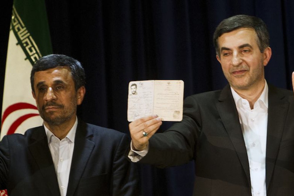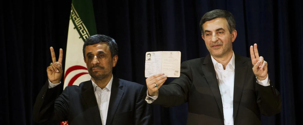 In recent years, as the IRGC and Khamenei have concentrated their power,1 they've seen the executive branch as the final hurdle to controlling all branches of the government. Outgoing President Mahmoud Ahmadinejad’s victory in 2005—when he defeated former President Ali Akbar Hashemi Rafsanjani (1989-1997), who claimed the election was rigged—was considered the final piece in this effort to monopolize power, but things have not gone as planned since he was re-elected in 2009. Millions protested what they believed was a rigged result, and second-term Ahmadinejad grew increasingly unwilling to take orders from Khamenei and his IRGC supporters. He has also seemed unwilling lately to give up power, as he and Esfandiar Rahim Mashaei, his chief of staff, have claimed more than once to be in direct communication with the Mahdi, the Shiite messiah. In doing so, Ahmadinejad and Mashaei have undermined the conservative Muslim clerics whose authority and power rely partly on claims that they represent the Mahdi in his absence. Khamenei and his allies had believed that with enough threats and virulent attacks, accusing Ahmadinejad and Mashaei of all manner of perfidy—from financial corruption to complicity with Israel and the US, even dabbling in demonology—Mashaei would not run in this year's election. Yet Mashaei did throw his hat in the ring, registering as a candidate only moments before the deadline and accompanied by Ahmadinejad, who later claimed to have taken the day off as president to accompany his compatriot to the registration ceremony.