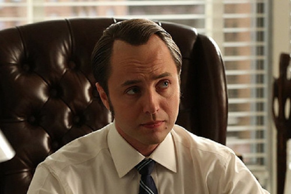 Dear TV, Is it just me, or did this episode feel just like old times? We had grisly comic violence. We had an unexpected moment of post-coital insight. We had Roger throwing himself—and his money—at Joan. We had Betty getting propositioned by a fancy stranger at a party. We had Duck Phillips! We’ve all noted that a major contrivance of this season is the repetition of old situations. From those exasperating flashbacks to Dick Whitman’s Last Picture Show to Peggy’s adapting of Don’s old pitches, the material of this season has been material we thought we’d left behind.
