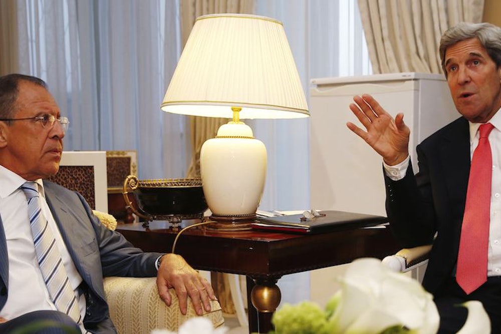 When Kerry began his wooing of Lavrov, he quickly discovered, as his predecessor Hillary Clinton did, that Russia has no intention of abandoning its long-standing relationship with the Assad family or letting the U.S. or its European allies change the military balance in Syria in favor of the opposition. At the beginning, Kerry claimed his goal was to change Assad’s “calculation”—and his aides indicated he would push for increased supplies and even military equipment for the Syrian opposition. But with Russia blocking the way, and Washington reluctant to step up its involvement in the war, he was quickly back to square one. That’s when he went off course.
