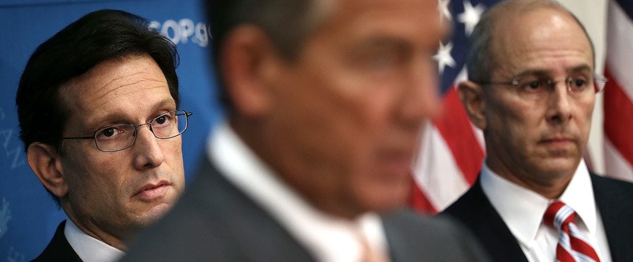 Having said all that, the real problem with conservatives’ Obamacare strategy isn’t that it won’t work. It’s that the Obamacare obsession is actively sabotaging the GOP. Earlier this week The Washington Post ran an article about the ongoing dysfunction among House Republicans. Easily the most telling anecdote had to do with a largely symbolic measure called the Helping Sick Americans Now Act, concocted by Majority Leader Eric Cantor to help Republicans look like they care about the problems of ordinary people. (The bill feinted at easing the lot of the uninsured.) That, apparently, is where Cantor erred. As the Post explains: