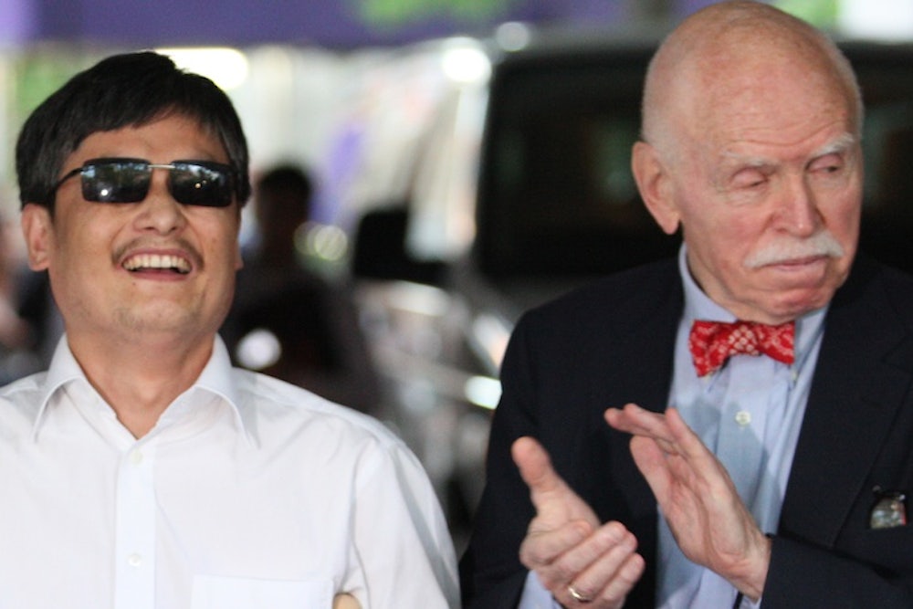 Chen may be acting under the guidance of China hawks like Smith and Fu. Earlier this year, Chen testified at a hearing convened by the House Global Human Rights subcommittee, chaired by Smith; last year, at another hearing of this subcommittee, Chen spoke to members through Fu’s cell phone. (At the time, some accused Fu of having an overly partisan anti-Obama agenda, but Cohen praised him.) Mark Corallo, who several people close to the situation told me is Chen’s spokesperson, could not be reached for comment. (Corallo describes himself as a Republican.)