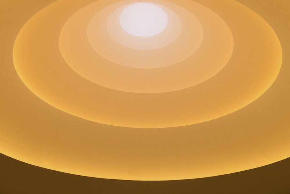 Did I enjoy Aten Reign? And what were the museumgoers who watched Turrell’s shifting lights thinking? Frankly, I’m not sure that the answers to these questions really matter. The Guggenheim has a spectacle on its hands. And it is in the nature of a spectacle that it is its own justification. It hardly matters whether Turrell’s brilliant play of light suggests painterly refinement or Las Vegas kitsch. (There is a new Turrell in Vegas, part of the collection of MGM Resorts’ CityCenter properties.) To criticize the art of James Turrell—who has major museum shows this summer not only in New York but also at the Museum of Fine Arts in Houston and the Los Angeles County Museum of Art—is a little like setting out to critique the summer blockbuster movies. You may have some useful points to make, but when the subject is so inextricably intertwined with a world where might makes right, criticism can seem beside the point. I would rate Turrell—who has since the 1970s been isolating and framing light effects—as a minor but authentic poetic spirit. His surprising washes and bolts of illumination can have a Transcendentalist energy. And his Skyspaces—rooms open to the sky, with the natural light modulated and intermixed with artificial light—do supply moments of delicate lyricism. Turrell is a minor poet with the ambitions of a megalomaniac. And the art world is his enabler.