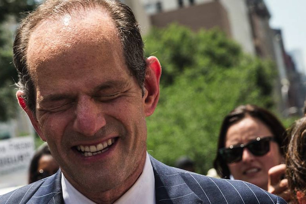Eliot Spitzer had been a candidate for comptroller of New York City for all of about two seconds before the first sock joke of the campaign made its debut. At a supposed “signature-gathering event” in Union Square on Monday—really, an excuse to get mobbed by the press, which is what happened—a heckler shouted at Spitzer, “Did you leave your black socks on!?!” And so it began.