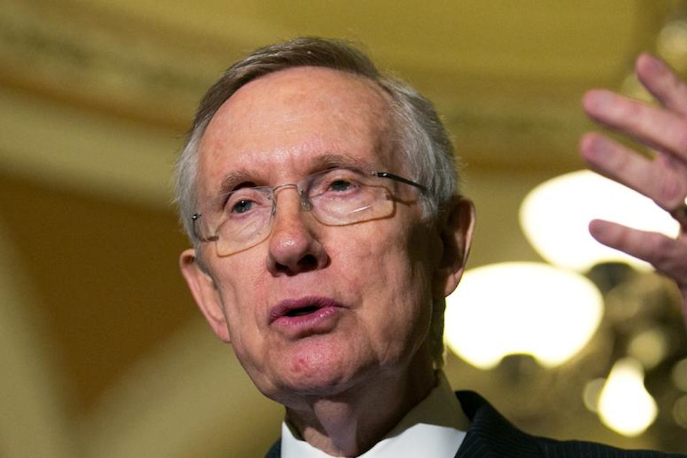 This has Reid warning that he may employ the “nuclear option” to change Senate rules to allow for a straight-majority vote on nominees. Reid told his Democratic colleagues last week that what McConnell was doing now was unprecedented, that they had been willing to hold votes on plenty of eyebrow-raising nominees made by George W. Bush: “I ate shit on those nominees,” Reid told them, according to Politico. McConnell, in turn, is warning that going nuclear will make Reid the “worst leader” in the history of the Senate. To which Reid retorted: “He tends to not focus on what he has done to the Senate. I guess he follows, I hope not, the demagogue theory that the more you keep saying something that is false, people start believing it.” A meeting is scheduled for Monday evening to find a way through the crisis.