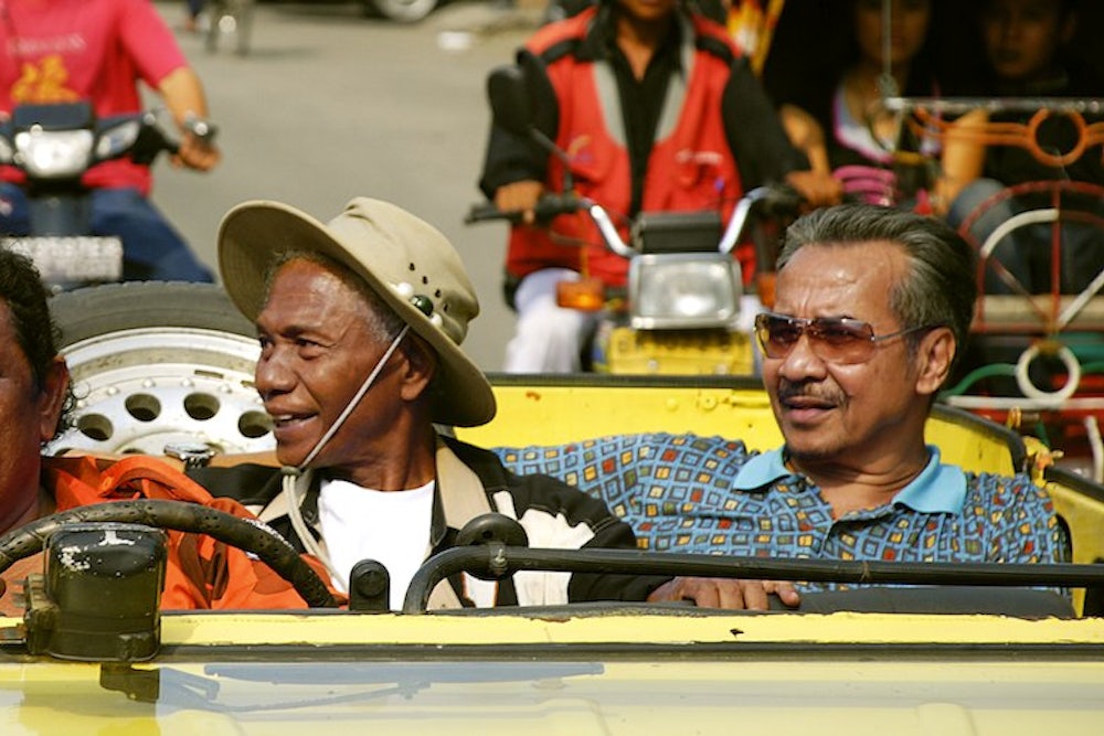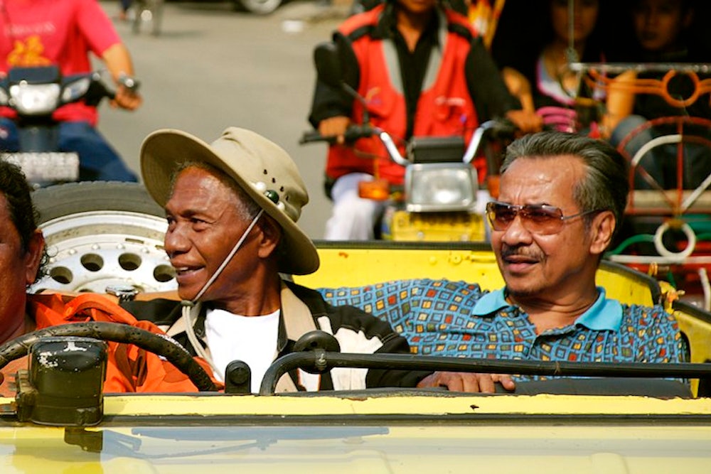 Better characters could hardly have been invented: Anwar is thin and angular, his long limbs always bouncing friskily, his gray hair framing a playful face. Herman is fat and slack-jawed and inexplicably dressed in drag throughout most of his performance. (Anwar chose his costumes, Oppenheimer explains.) They make a magnetic pair, perfect foils for each other, at once cocky and desperate. “When I met Herman, he came strutting down the street in a tank top and long wild hair and he looked like a real thug, and I remember being kind of frightened,” Oppenheimer recalled. But Anwar is the film's brutally conflicted moral center.